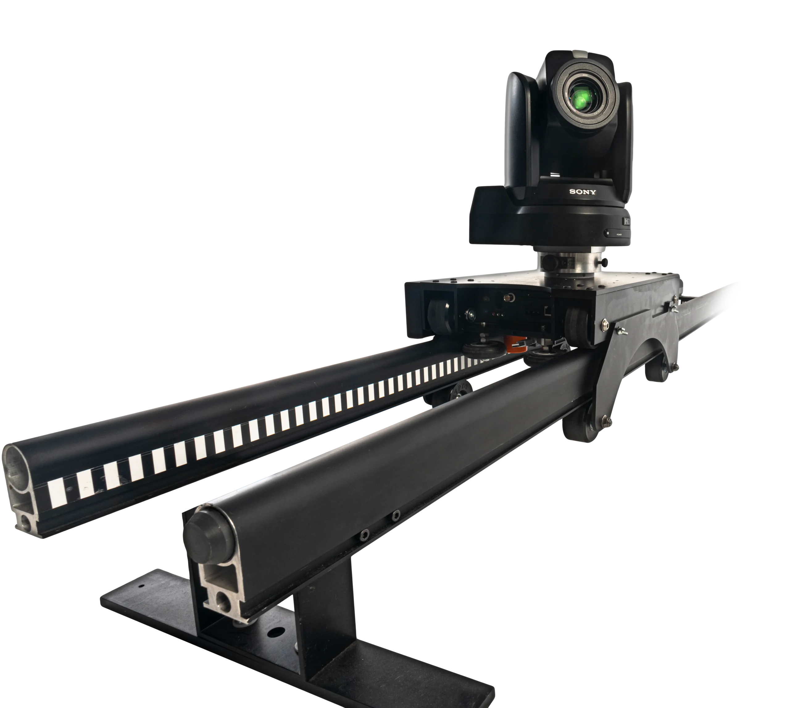 Le logiciel multiCAM TRACKER agrège les positions des différents appareils connectés pour communiquer les coordonnées d’une caméra virtuelle globale sous un unique signal FreeD. SPIRIT Slide est auto-tracké, aucun système externe de tracking optique n’est nécessaire pour fournir les informations de position en temps-réel. Une bande le long des rails permet au chariot lui-même de connaître sa position.